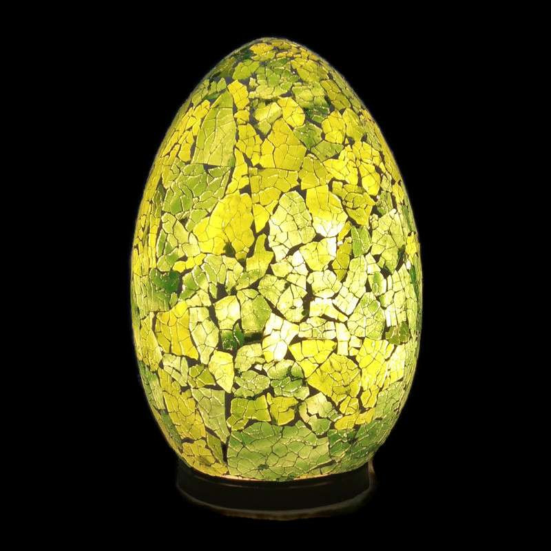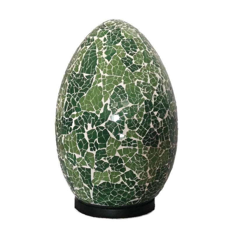 Egyedi lámpabúra fa talpon. A kézzel festett üvegdarabok műanyag búrára egyesével vannak rögzítve, ezáltal minden darab különleges. Kivilágítás nélkül is ékkövei lehetnek lakásunknak.
