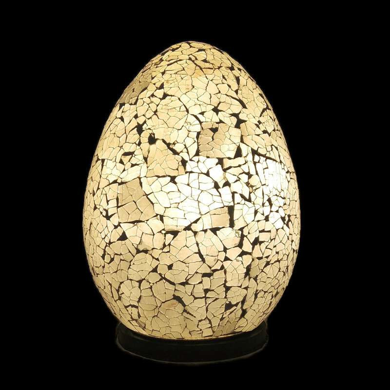 Egyedi lámpabúra fa talpon. A kézzel festett üvegdarabok műanyag búrára egyesével vannak rögzítve, ezáltal minden darab különleges. Kivilágítás nélkül is ékkövei lehetnek lakásunknak.