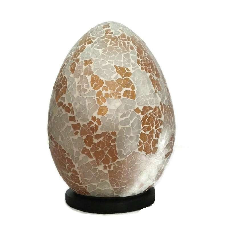 Egyedi lámpabúra fa talpon. A kézzel festett üvegdarabok műanyag búrára egyesével vannak rögzítve, ezáltal minden darab különleges. Kivilágítás nélkül is ékkövei lehetnek lakásunknak.