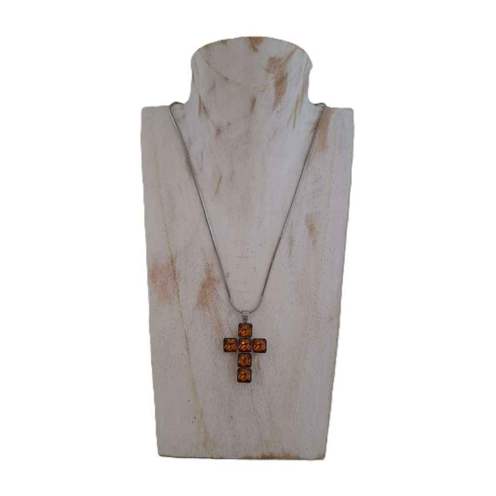 Ez a kereszt medál nem csupán ékszer, hanem ősi szimbólum, mely mély kulturális és spirituális jelentéssel bír. A szögletes, csiszolt kristályüveg kövek narancssárga árnyalatban ragyognak, amely az öröm, az energia és a kreatív önkifejezés színe. Elegáns, modern megjelenése miatt mindennapi viseletre és különleges alkalmakra is ideális.