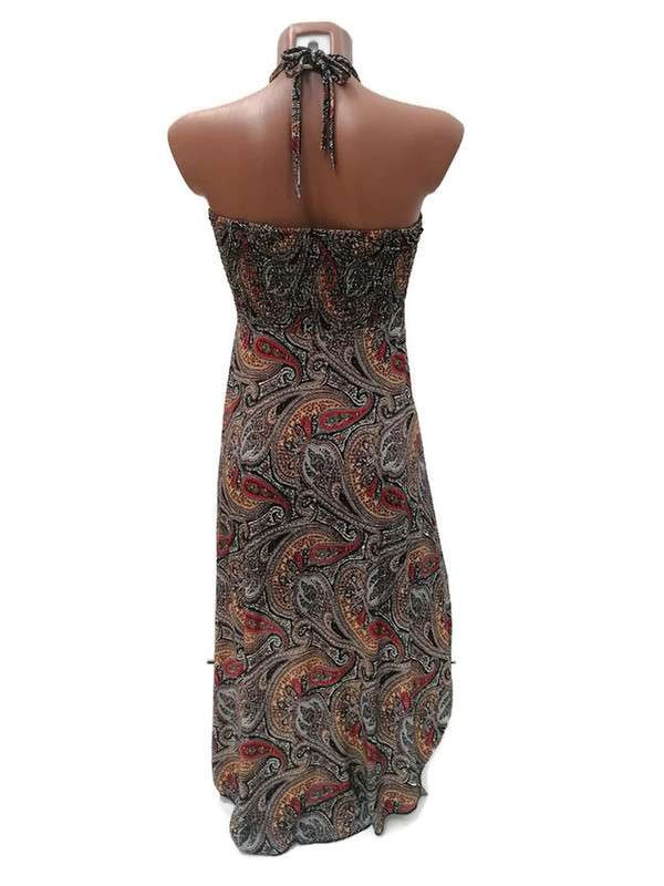 Rövid ruha, elöl rövid, hátul hosszabb fazon piros-narancs