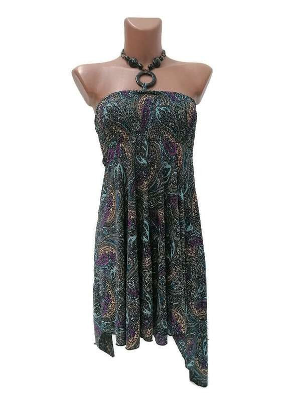 Rövid ruha, elöl rövid, hátul hosszabb fazon türkiz-lila