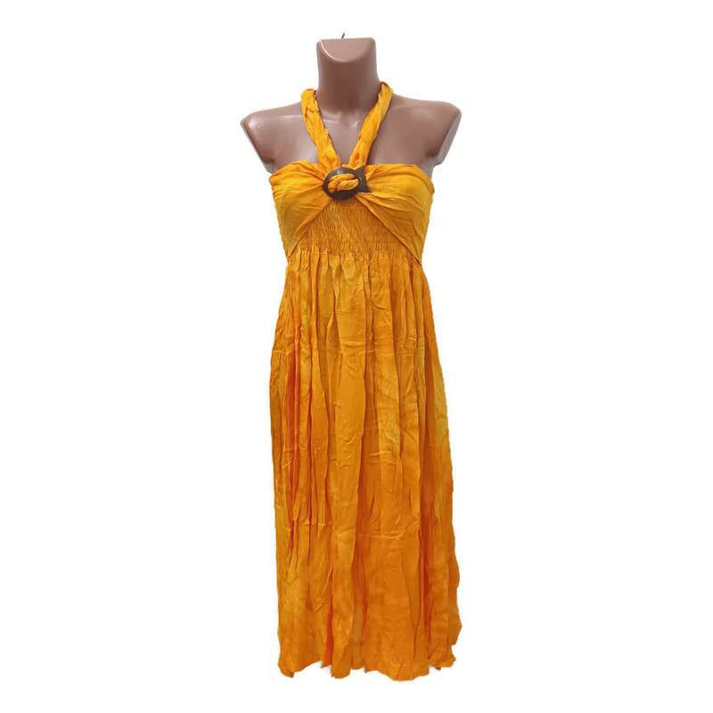 Rövid ruha, kókuszhéj csattal batikolt narancs