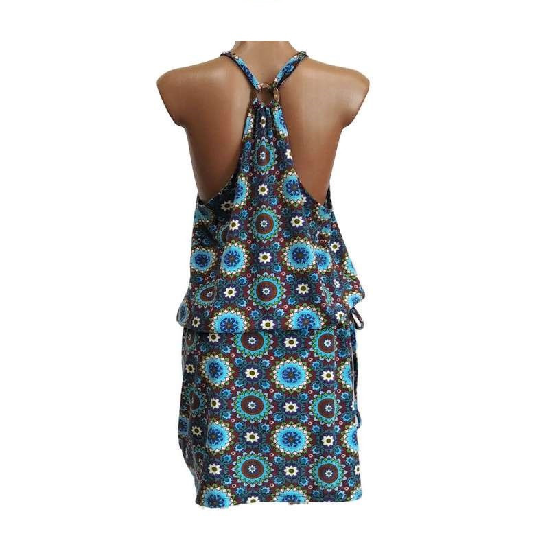 Virágos rövid ruha, vékony pántos világoskék